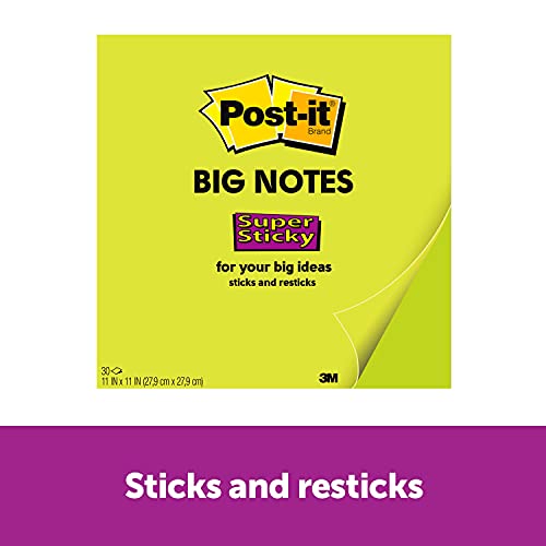 Post-it Super Sticky Big Notes, 11 in x 11 in, Sticky Notes, 30 fogli per pad, 1 pad (BN11G)