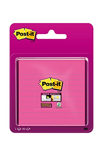 Post-it-XL, 101 x 101 mm, confezione da 270 foglietti autoadesivi Super Sticky per appunti a righe, colore: fucsia, confezione da 90 pezzi