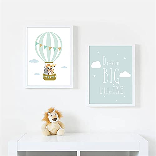 Set di 3 poster per cameretta dei bambini, motivo arcobaleno, palloncino ad aria calda, decorazione da parete per bambine e ragazzi (A,60 x 90 cm)