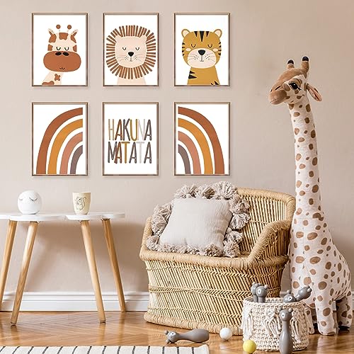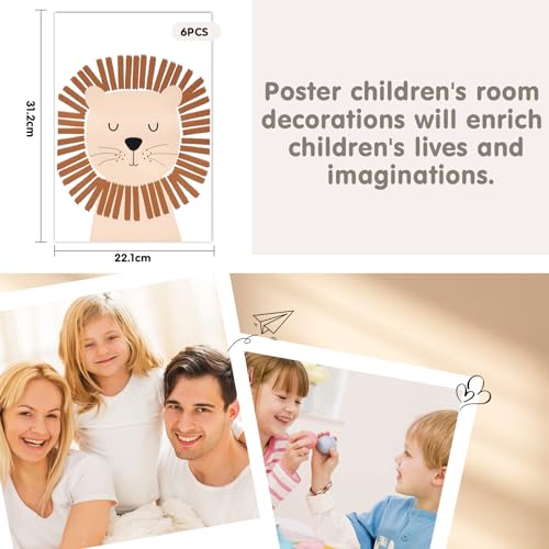 6 Poster Decorativi per Cameretta dei Bambini, Immagini per Neonato Ragazzi Ragazze Bambini Soggiorno Camera da Letto Decorazione da Parete, Tema Animali Lion, Tigre, Girafe, Senza Cornici