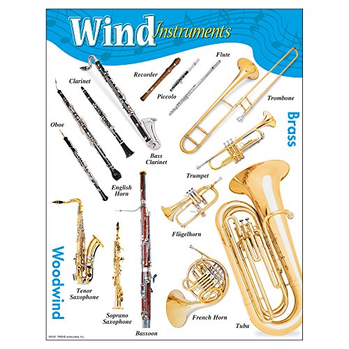 Poster didattico, da aula scolastica, con strumenti musicali a fiato