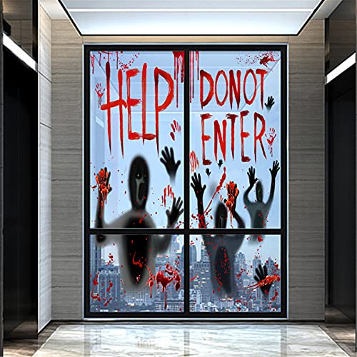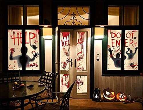 Facile da rimuovere e non lascia residui: questo poster per finestre di Halloween è resistente e non adesivo. Non si attacca alla finestra, evita di imbrattare il vetro o la porta. Facile da incollare e rimuovere. Si prega di pulire finestre o altre superfici da utilizzare prima di incollare. Spruzzare poca acqua sulla finestra, si attaccano tutti da soli. Sarà stabile e facile da rimuovere. si può perfettamente creare un ambiente orribile e sanguinoso di Halloween.