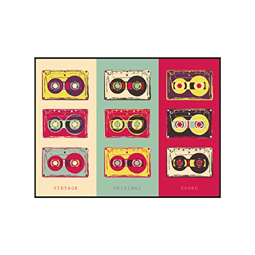 Poster da parete musica vintage stampa audiocassette rock stile retrò pop art 30x40 DIN A3 SENZA CORNICE
