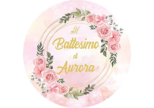 Poster personalizzato con nome frase fiori rosa oro festa battesimo evento 70x70 cm banner tondo