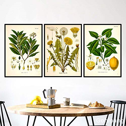 Poster e Stampe botaniche Vintage Piante medicinali Grafico retrò Wall Art Cucina Medicina a Base di Erbe Quadri su Tela Decorazioni per Ufficio 40x50cmx3 Senza Cornice