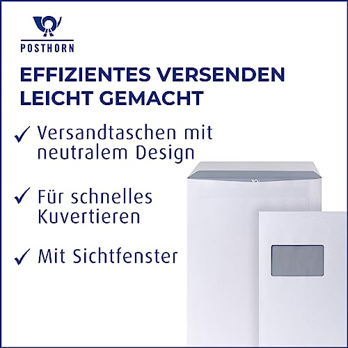 Posthorn 05270107 busta con finestra, autoadesiva, 250 pezzi, C4, 229 x 324 mm, 120 g, colore: bianco