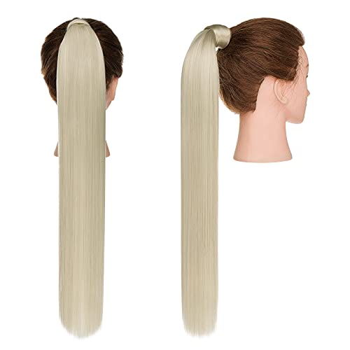Posticci per Capelli Extension Clip Coda di Cavallo Ponytail Wrap Around Parrucchino Lisci Sintetici Finti Lunghi Naturali, Biondo cenere