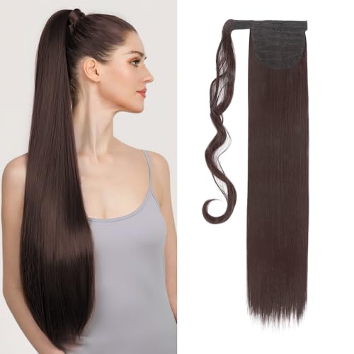 Posticci Naturale Estensione dei Capelli Wrap on Ponytail Extension Capelli Veri Coda di Cavallo Parrucchino Ombre 66cm Dritto Marrone scuro
