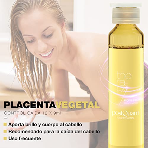 PostQuam - Confezione per il Trattamento della Caduta dei Capelli - Include 12 Fiale di Placenta Vegetale 9 ml + Shampoo Anticaduta 500 ml