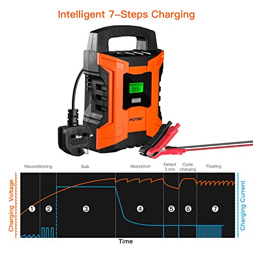 Potek 10 A Smart caricabatteria portatile e Mantenitore con schermo LCD