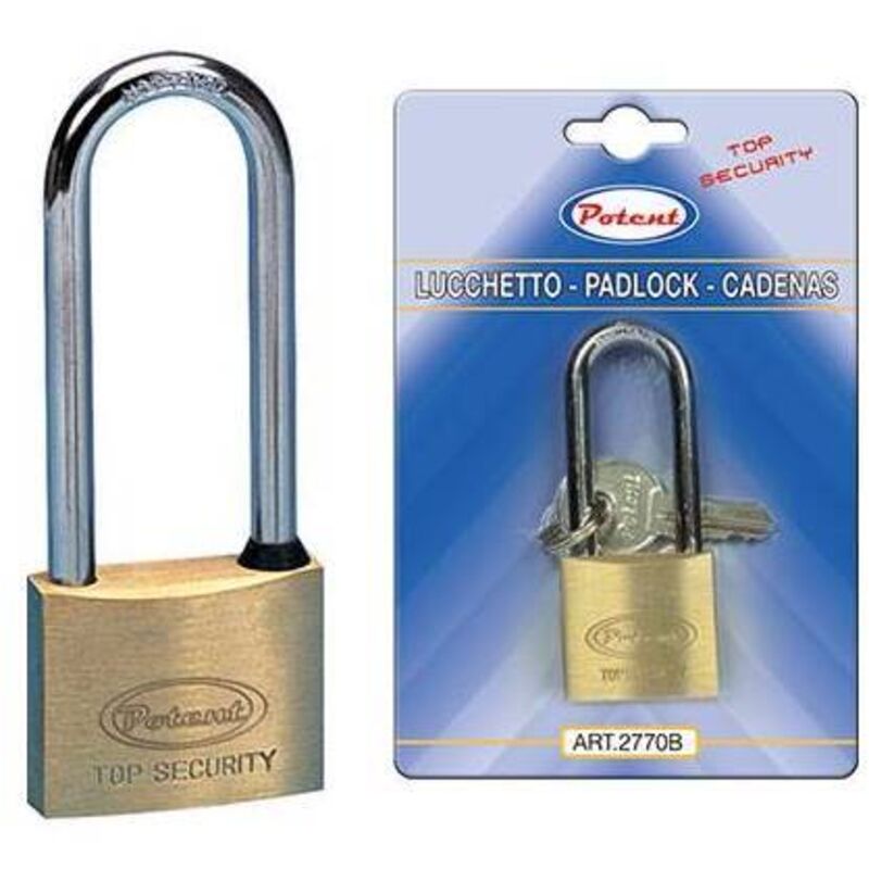 OTTONE ARCO CROMATO CHIAVI 2 MM 30X41In ottone massiccio lucido. Arco in acciaio cementato e cromato con doppia ritenuta e rotazione di 360°. Arco con guarnizione tenuta acqua. Molla dell'arco inossidabile. Pistoncini di combinazione in ottone. Molle pistoncini in acciaio. Richiamo automatico della chiave nella posizione di estrazione. Estrazione chiave a lucchetto aperto o chiuso. Fornito con 2 chiavi piatte. In blister.