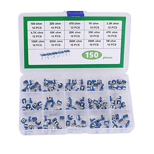 Set di Potenziometri da 150 Pezzi, Kit di Potenziometri Regolabili Resistore Variabile 10 Valori 100ohm 200ohm 470ohm 1K 3,3K 4,7K 10K 20K 30K 47K 100K 200K 300K 500K Kit Componenti 1M