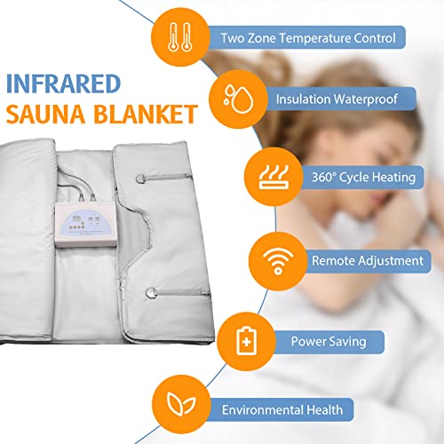 Potuem Sauna Infrarossi, Far Infrared Sauna Blanket a 2 Zone, Coperta per Sauna a Infrarossi con Cerniera 220V, Sauna Portatile da Casa per Disintossicazione e Fisioterapia