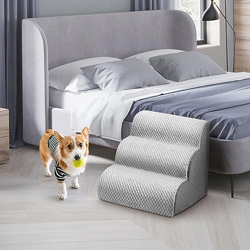 Potuem Scala per Cani 3 Gradini, Scaletta per Cani e Gatti con Rivestimento Lavabile, Scala per Cani e Gatti Piccoli per Divano e Letto, 60cm x 40,5cm x 41cm