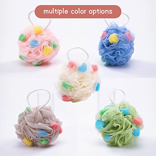 Pouf doccia in spugna di luffa esfoliante a rete morbida in rete per doccia e corpo, per donne e uomini, set di 5 spugne per il bagno
