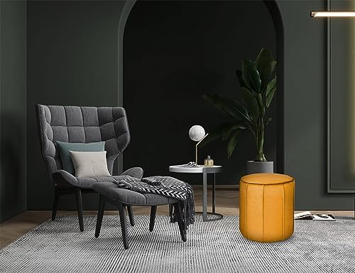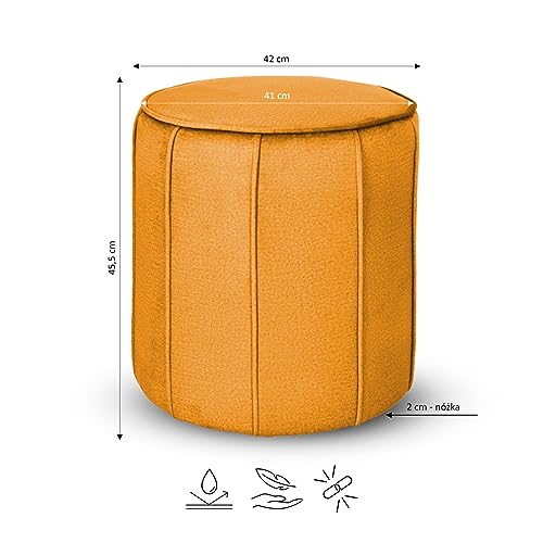 DIMENSIONI: pouf rotondo con altezza totale di 45,5 cm, lunghezza di 42 cm e larghezza di 42 cm. Tessuto di rivestimento: tessuto di rivestimento in velluto - resistente all'abrasione e alla peluria. Imbottitura: morbida schiuma e avena. Gambe in plastica resistente.