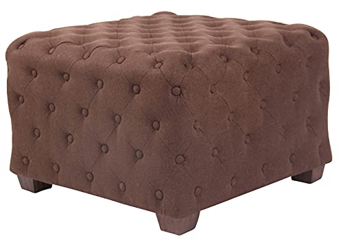 CLP Pouf Trapuntato Nimes in Tessuto I Sgabello Basso Quadrato con Bottoni Ornamentali I Poggiapiedi da Divano Comfort I Design Chesterfield, Colore:Marrone