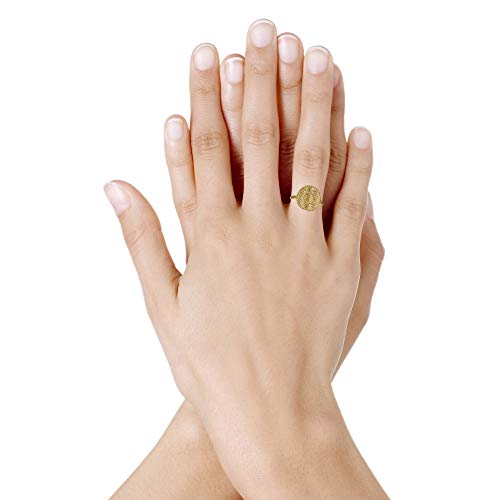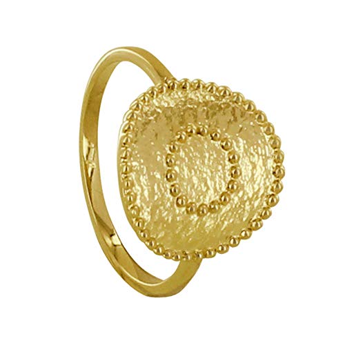 LES POULETTES BIJOUX - Anello Placcato Oro Tondo Martellato e Perline - talla 10