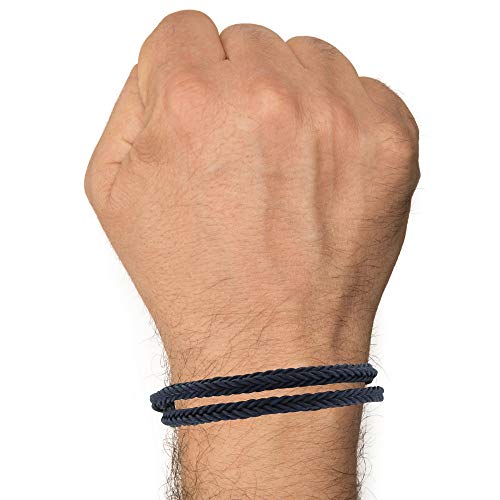 LES POULETTES BIJOUX - Bracciale Uomo Doppio Giro Treccia di Cotone Quadrato - Blu Navy