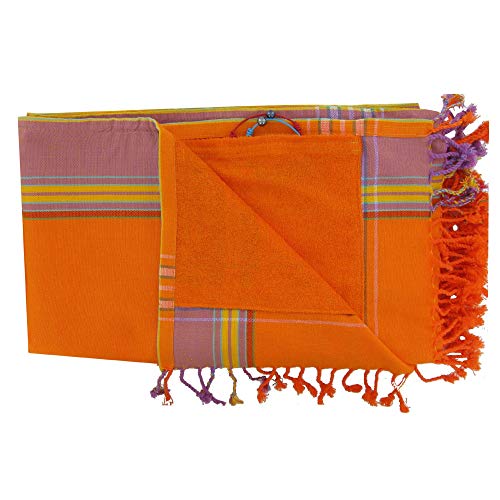 LES POULETTES Kikoy Telo Mare in Cotone Spugna Color Arancio