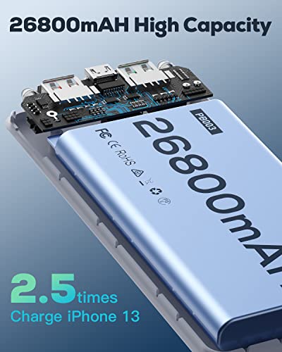 Power Bank 26800mAh, 22.5 W USB C Batteria Esterna PD QC 3.0 di Ricarica Veloce PowerBank, 3 Uscite e 2 ingressi Caricabatteria Portatile del Telefono Cellulare con Torcia Elettrica per iPhone 12/11