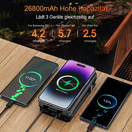 Power Bank 26800mAh Caricabatterie Solare - Wireless Batteria Esterna Portatile con 4 Pannelli Solari Impermeabile Batteria Esterna per Smartphone Tablet e Campeggio