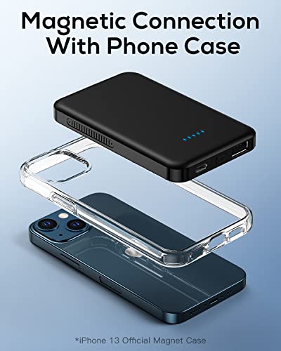 【Comodo】Goditi una ricarica wireless facile e conveniente semplicemente collegando magneticamente la power bank sul retro del telefono e quindi lasciando che l'energia si accumuli. Anche con una custodia per cellulare, la ricarica è più stabile e flessibile. (Nota: solo custodia per cellulare ultrasottile).