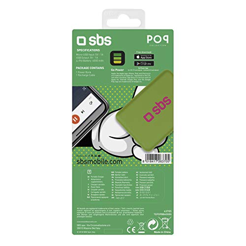 SBS Power Bank Caricabatterie Portatile da 4000 mAh, Dual Charge, 1 Ingresso Micro USB e 1 Uscita USB, Cavo USB Incluso, Verde