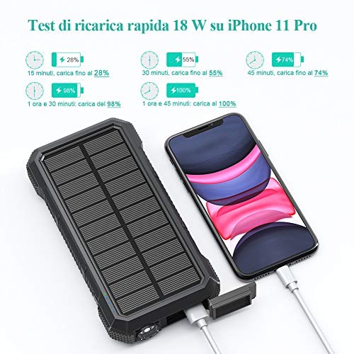 Caricatore solare da 20000mAh: il caricatore solare da 20000mAh ad alta capacità consente di caricare più volte i dispositivi. I tempi di ricarica della banca di energia solare BLAVOR sono stati ampiamente testati. Può essere ricaricato completamente in circa 13 ore con un adattatore da 5V 2.1A.