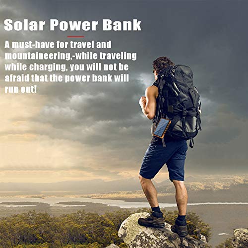 [Potente torcia di emergenza a LED e facile da trasportare] Caricabatteria solare Luci LED integrate intelligenti, la banca di energia solare può essere utilizzata come torcia in caso di oscurità e emergenza. Power Banks ha 3 modalità di illuminazione: Luce intensa / Soft / SOS. Quando è completamente carico, può accendersi continuamente per 32 ore in modalità alte luci o 65 ore in modalità luce soffusa. Caricatore per telefono portatile Dotato di un cordino gratuito, puoi facilmente appendere i