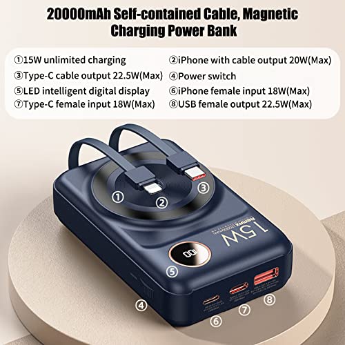 Power Bank Wireless Magnetico 20000mAh Batteria Esterna Magsafe Caricatore Portatile PD 20W USB-A/Type-C 22.5W Ricarica Rapida Caricabatterie con Display LED per iPhone 14 13 12 Mini Pro Max