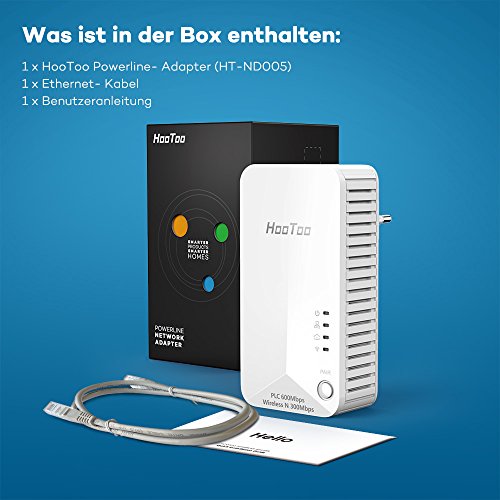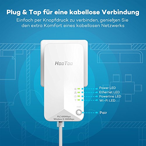 Power Line HooToo Adattatore di Rete Wi-Fi Router 2 porte (Almeno 2 powerlines von HooToo richiesto)