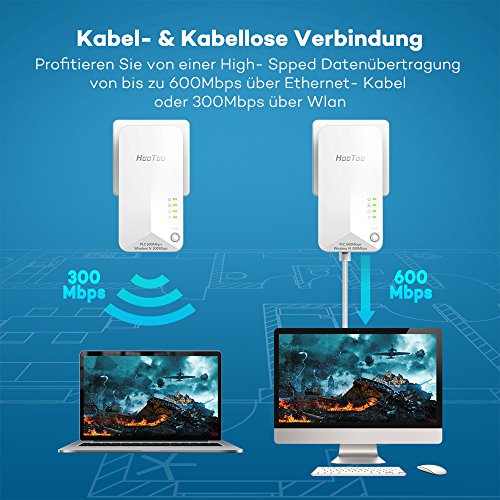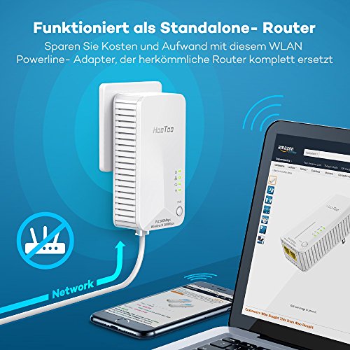 standalone Router con velocità di 600 Mbps: approfittate di una velocità di trasferimento dati fino a 600 Mbps, che è molto più rapidamente rispetto a quelli dei tradizionali repeatern Wi-Fi e avviene tramite un adattatore Powerline, che funge da router standalone e quindi risparmiare il costo. Anche si riduce lo sforzo necessario, poiché invece due dispositivi, solo un beneficio