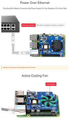 Power Over Ethernet HAT POE Type D For Raspberry Pi 3B+/4B, 802.3af-Compliant, Fit Raspberry Pi Official Case