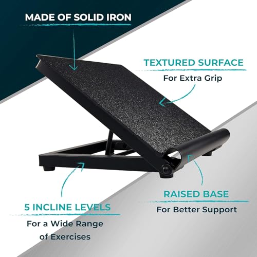 LIVELLI DI INCLINAZIONE REGOLABILI: Questa Slant Board, semplice da usare grazie ai 5 livelli di inclinazione, può essere facilmente personalizzata in base alle tue esigenze ed è quindi adatta in caso di lesioni e per qualsiasi fase di recupero. Per variare l'incilinazione ti basta far scorrere la tavola lungo la gamma di altezze disponibili.