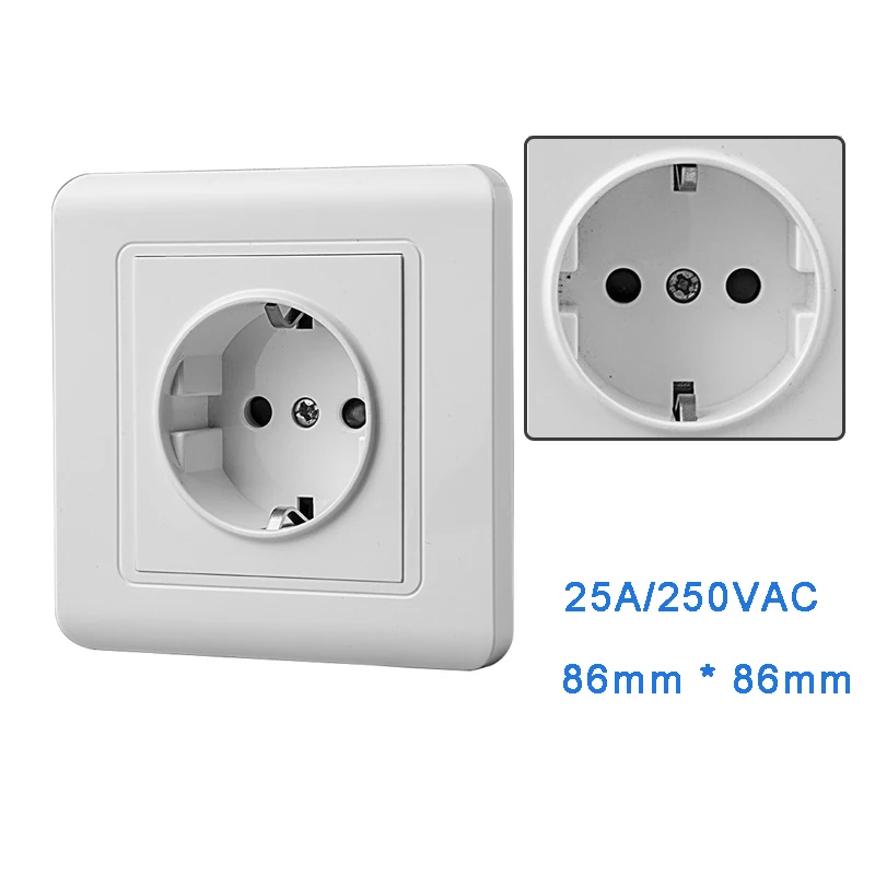 1pc Power Socket 25A EU Standard Electrical Outlet White Panel Wall socket AC250V~ 25A
