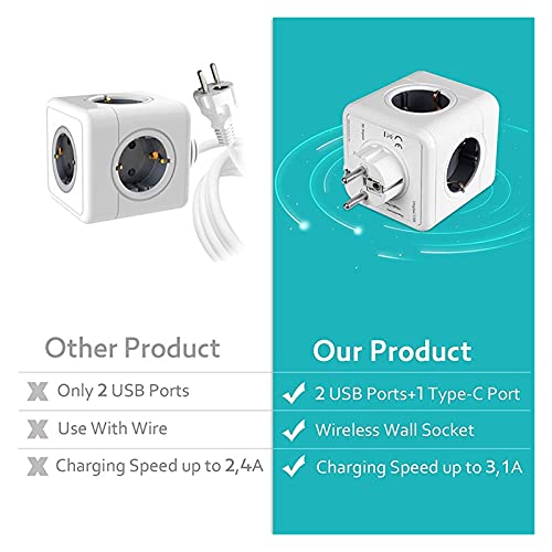 Power Strip Plug Extension Socket Power Cube Porta USB Punte per Spina UE Terminale con Adattatore a Muro 250 V con USB Multi Outlet (Plug Type: EU, Rated Voltage: 250V)
