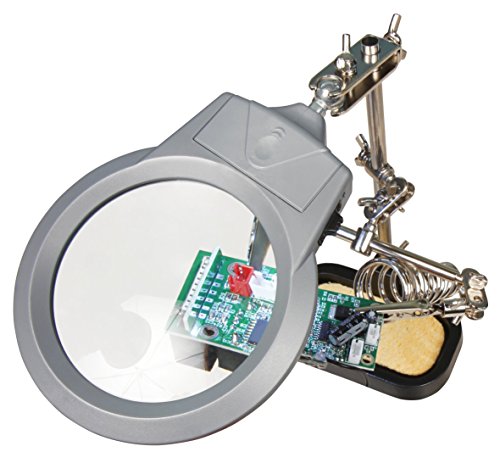 MC POWER - Terza mano con lente d'ingrandimento a LED | Supporto per saldatore e spugna, ingrandimento 2x | perfetto per lavori di saldatura e controllo
