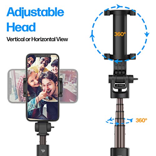 IL NUOVO 360° MONTAGGIO - Il morsetto ha varie opzioni di aggiustamento per lo scatto perfetto. È possibile girare il supporto per passare dalla fotocamera frontale a quella principale. Potete anche inclinare il bastone per attivare la modalità orizzontale o verticale.