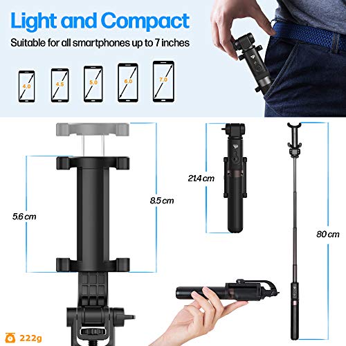 Power Theory Bluetooth Selfie Stick con Treppiede - Selfie Stick con Telecomando per Samsung Galaxy S20 S10 S9 S9+ S8 S7 e iPhone 11 PRO XR XS Max X SE 8 7 6s e Tutti Smartphone Wireless Selfi (80cm)
