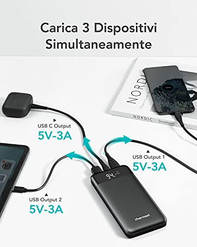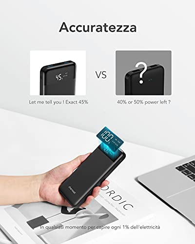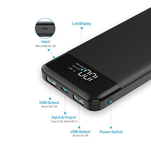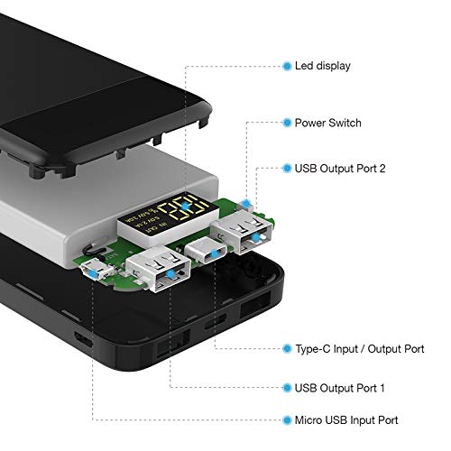 Powerbank 10400mAh, USB C Caricabatterie Portatile con LED Digitale Display Batteria Esterna Portatile con 2 ingressi e 3 uscite da 5V/3A per Huawei Xiaomi Smartphone.(Nero)
