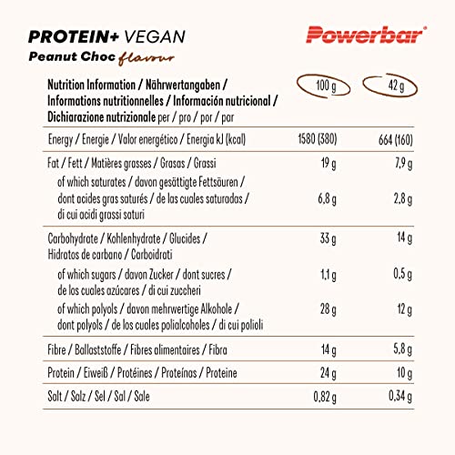 Powerbar Protein Plus Low Sugar Vegan Peanut Choc 12x42g - Barretta vegana ad alto contenuto proteico e a basso contenuto di zucchero
