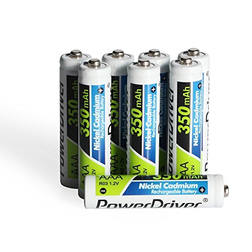 PowerDriver Batteria Ricaricabile 350mAh AAA Ni-CD Batteria per Torce lampada solare luci alimentate solari della cuffia Unità Radio Calculator (Confezione da 8 Pezzi)