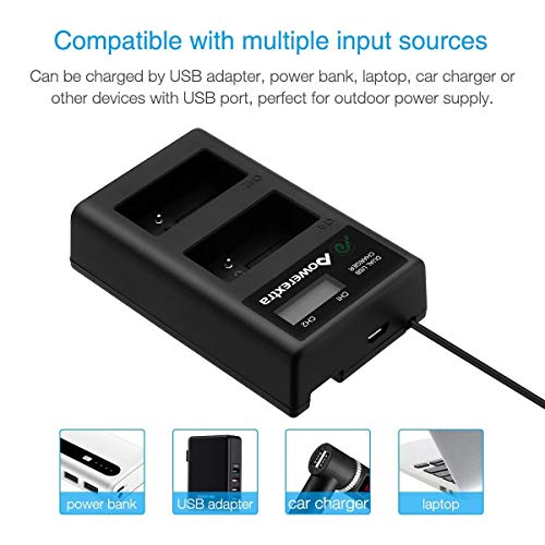 Powerextra - Panasonic DMW-BLC12, DMW-BLC12E, batterie con base di ricarica, con schermo LCD, compatibili con Panasonic Lumix DMC-FZ200 DMC-FZ1000 DMC-FZ2000 / 2500 DMC-G5 DMC-G6 DMC-G7 DMC-GX8 DMC-G85, 2 unità