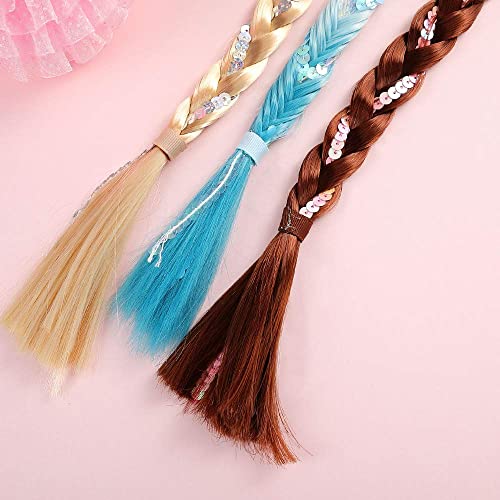 2. SICURO E MODA: componi materiali in fibra sintetica sicuri per i bambini, estensioni dei capelli di ogni ragazza con una bella treccia e un adorabile copricapo scintillante, la corda per capelli con elasticità regolabile non danneggerà i capelli del tuo bambino, certo che la tua bambina indossa estensioni durevoli per tutto il giorno senza rischi.