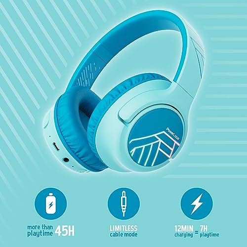 PowerLocus Cuffie Bluetooth per Bambini, Cuffie Wireless per Ragazzi, 74/85/94dB Limite di Volume, Luci a LED, Cuffie Over Ear Pieghevole Senza Fili con Microfono, Collegare 2 Cuffie a Un Dispositivo