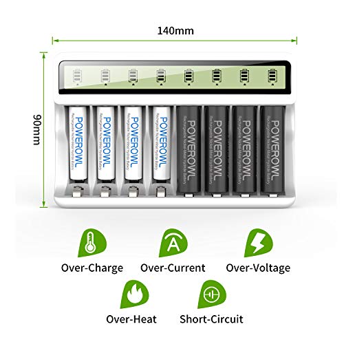 POWEROWL - Caricabatterie Pile Ricaricabili AA AAA, Funzione di Ricarica Rapida USB, Rilevamento Intelligence Della Batteria, per 8 batterie ricaricabili Ni-MH Ni-CD