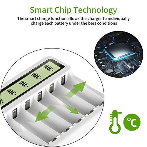 【LCD Display】: Il caricabatterie con schermo LCD intelligente mostrerà l'intero processo di ricarica per le AA AAA batterie ricaricabili,che mostra una panoramica dello stato di carica delle batterie