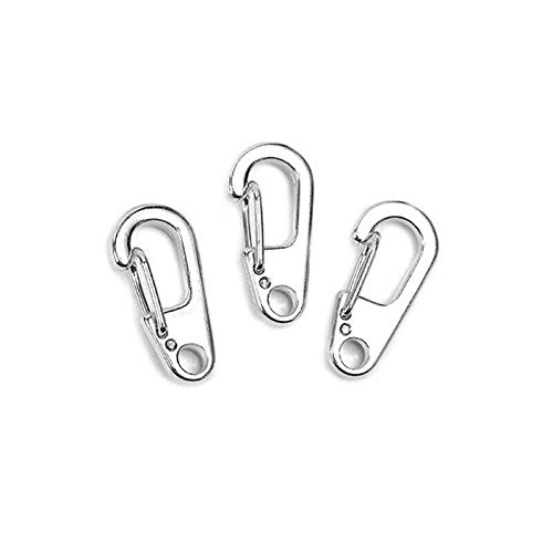 POWERTOOL Mini moschettone, 10 ganci a molla in acciaio a forma di D, moschettone portachiavi per campeggio, escursionismo, pesca o come portachiavi, argento