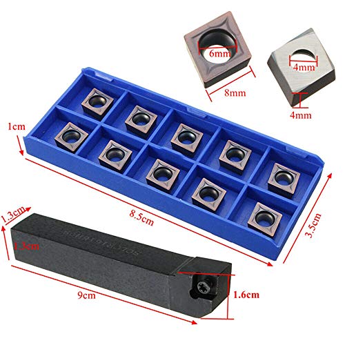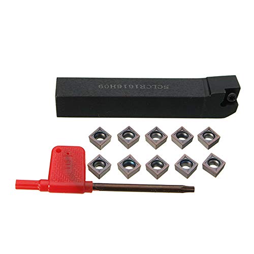 POWERTOOL - Supporto per barra di alesatura per tornio, 1 pezzo, 1 pezzo, separazione per tornitura portautensili SCLCR1616H09 + 10 inserti CCMT09T304 + 1 chiave inglese